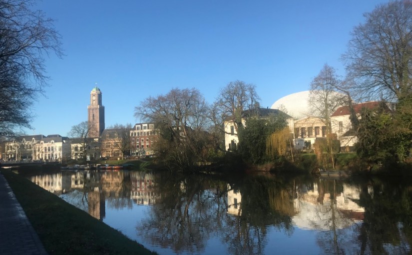 Zwolle was founded around 800 CE, Wikipedia continues, by Frisian merchants and some of Charlemagne’s troops; the name Zwolle (ZVOH-luh) comes from the word suolle or hill (the English cognate is “to swell”) because it was the only little incline in an area surrounded by four rivers that did not flood. Thus, my New Orleans friends, I am living in the original “sliver by the river” (or, rather, “het strookje bij de rivier”).